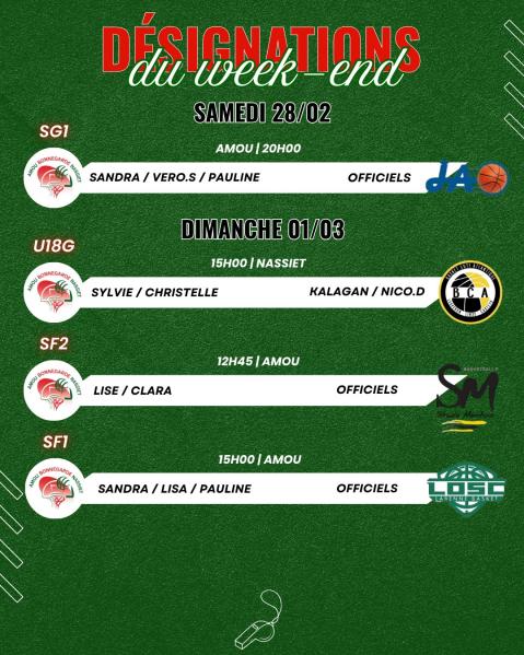 Les equipes sont désignées 1 /2 fois par année sportive pour un bon roulement et permettre à tous de participer sans contrainte à chaque loto. Merci de sensibiliser vos équipes, les lotos participent également aux rentrées financieres de notre association . Merci :) DOSSIER DE LICENCE !! 2025-26 Bonjour, un lien licence vient de vous être envoyé (NAQ0040002 FFBB...), vérifiez vos spams ou indésirables.